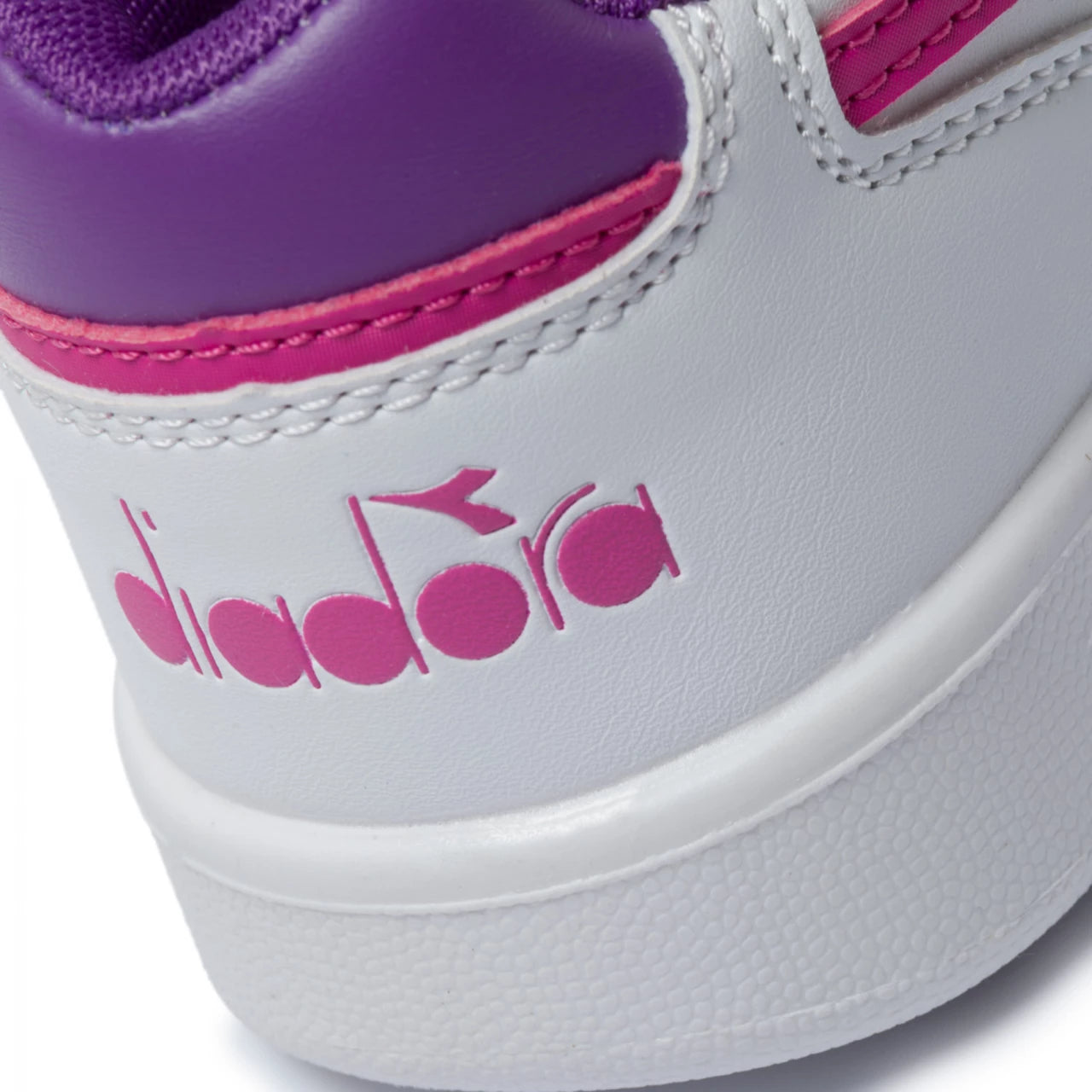 La marque Diadora est subtilement inscrite sur le talon et la languette de la chaussure, ajoutant une touche d'authenticité et de style.