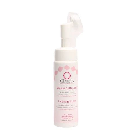 "Nettoie – Adoucie – Eclaircie Hydrate – Apaise – Active l'éclat Tous types de peaux , même Sensibles Elle nettoie et exfolie en douceur tous les types de peaux, même les plus sensibles. La peau est plus nette, plus douce, plus claire et elle est hydratée, apaisée avec un teint éclatant et illumine. Conseils d'utilisation: Prélevez du flacon-pompe 2 à 3 pressions de mousse. Répartissez-la d’une façon homogène sur la peau humide du visage et du cou, en évitant les yeux. Lavez avec la brosse, qui contient la mousse, en mouvements circulaires doux et sans frotter. Rincez à l’eau tiède. Utilisez matin et/ou soir pour le visage, le contour des yeux et le cou Compositions La mousse nettoyante CLARELIS est un produit innovant grâce à sa formule qui associe des agents lavants et purifiants doux, non desséchant et qui sont bien tolérés par la peau avec des extraits naturels de Ginkgo Biloba, de Consoude et de Fenugrec ; associés aux vertus du gel d’Aloe Vera et des Acides Aminés de Blé. Le tout est renforcé par des actifs de haute qualité : Niacinamide (Vitamine B3) et Panthenol (Provitamine B5). "